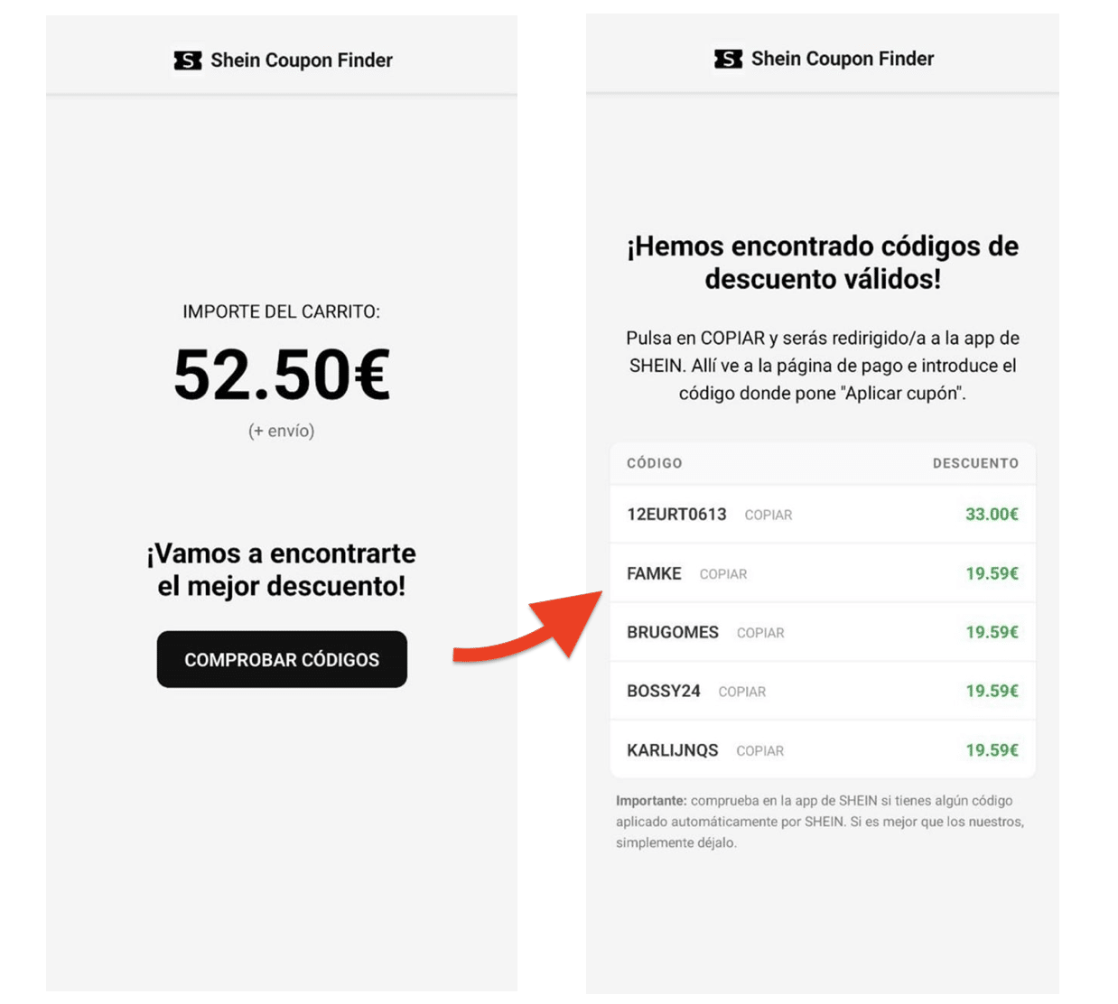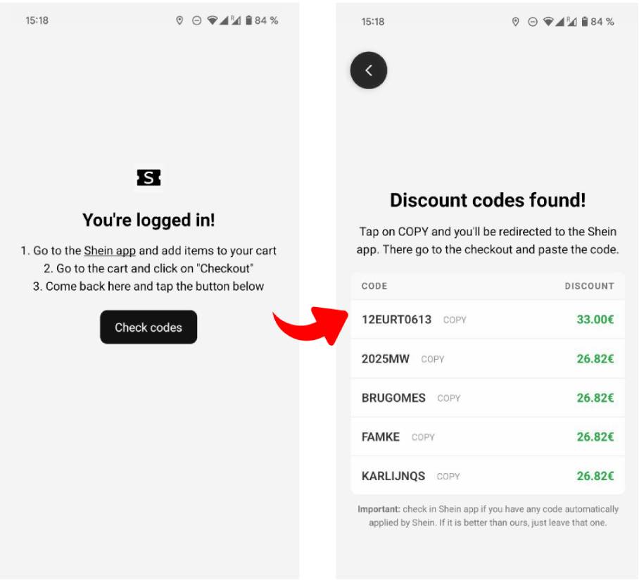 - Copia el mejor código y aplícalo en Shein.