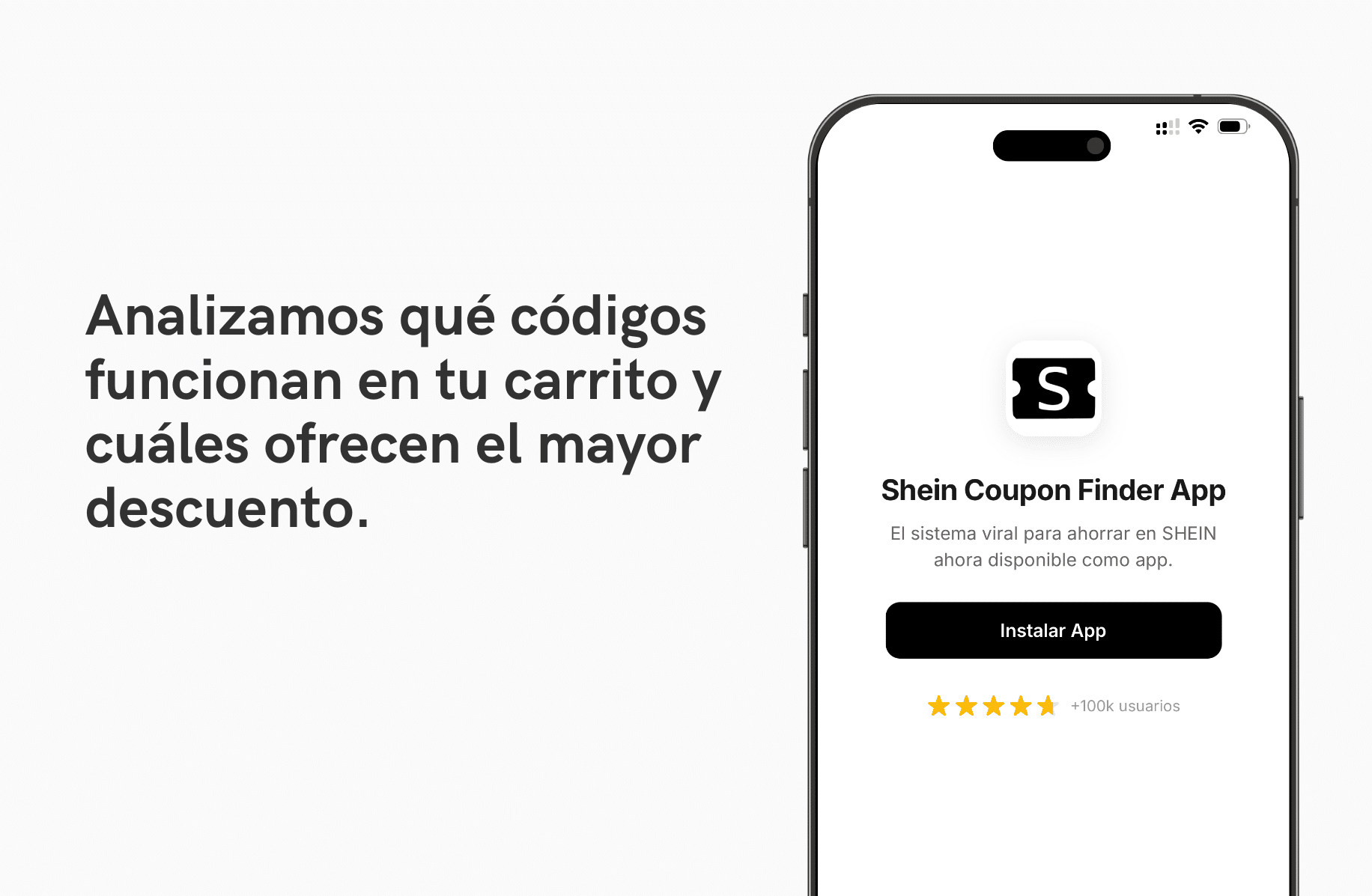 Shein Coupon Finder funciona como una app web. No se descarga desde la tienda: solo tienes que añadirla a tu pantalla de inicio para usarla como una app normal.